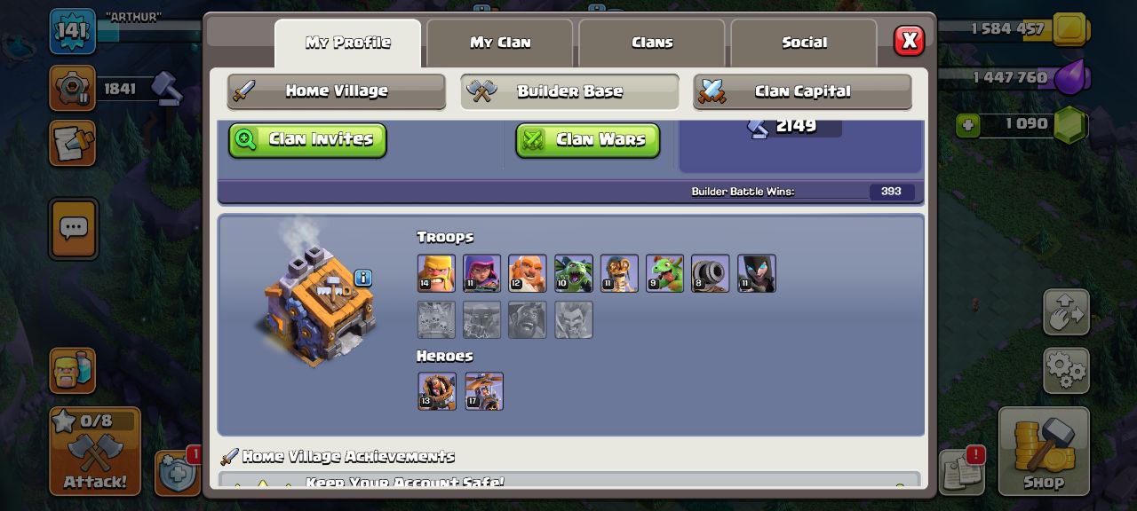 اکانت کلش آف کلنز – تاون هال 13 – لول 141